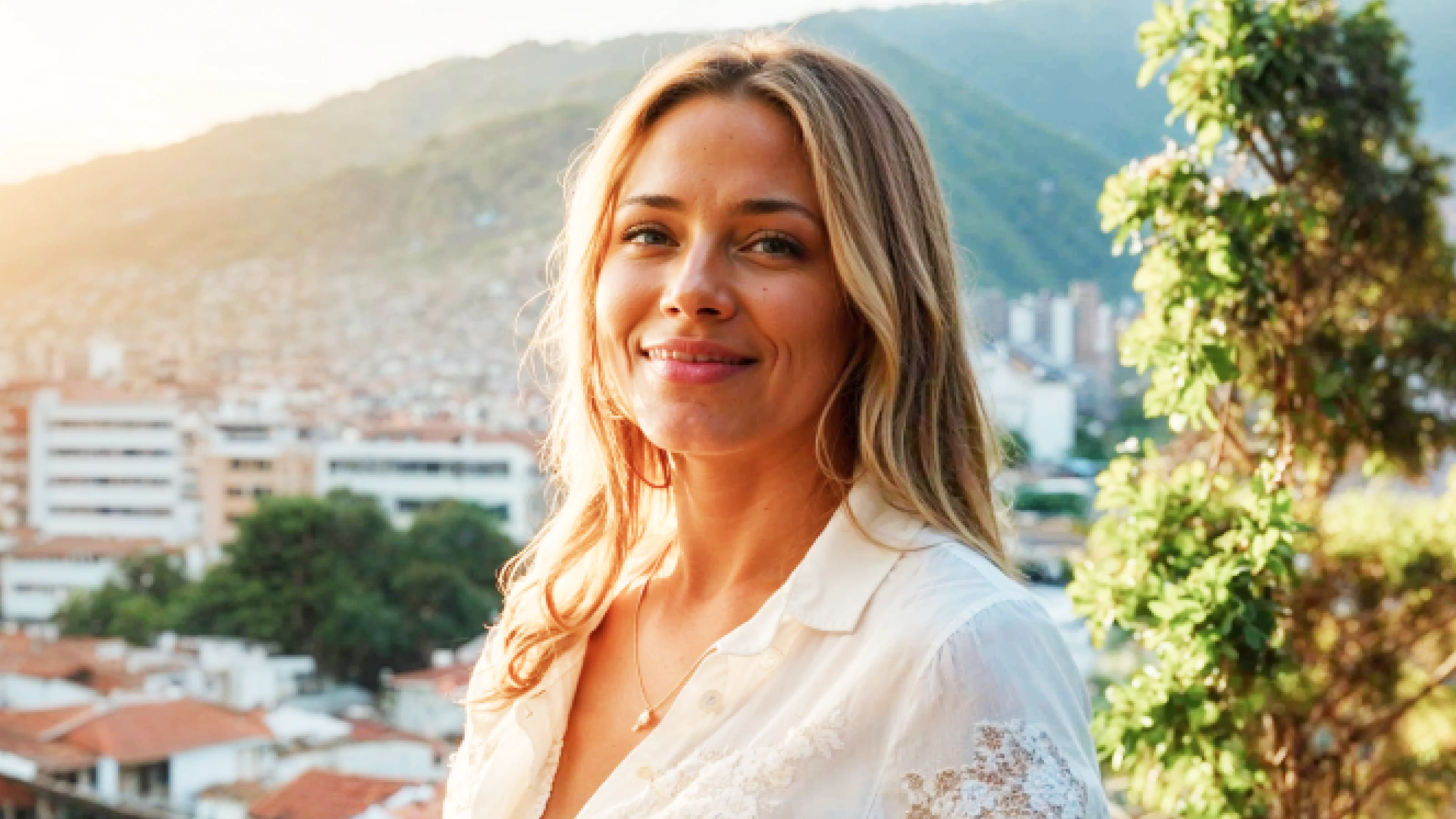 _Portrait of <Aina> on a balcony in Medellin watching the sunset