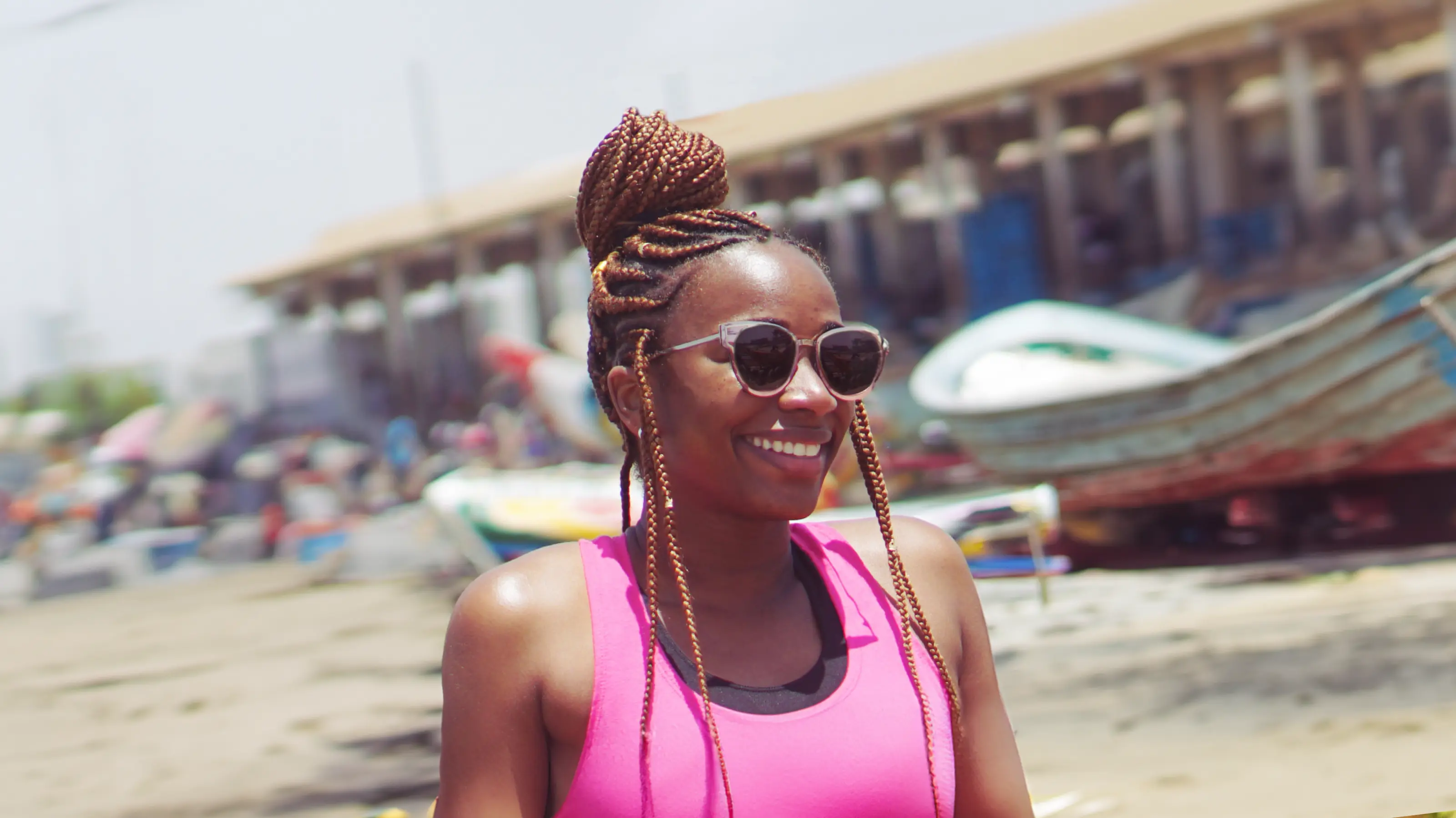 This is Aina, a past Black & Abroad guest. We asked AI to imagine her in Medellin, Colombia. The AI model generated images of her with light skin, white features and blonde highlighted hair.